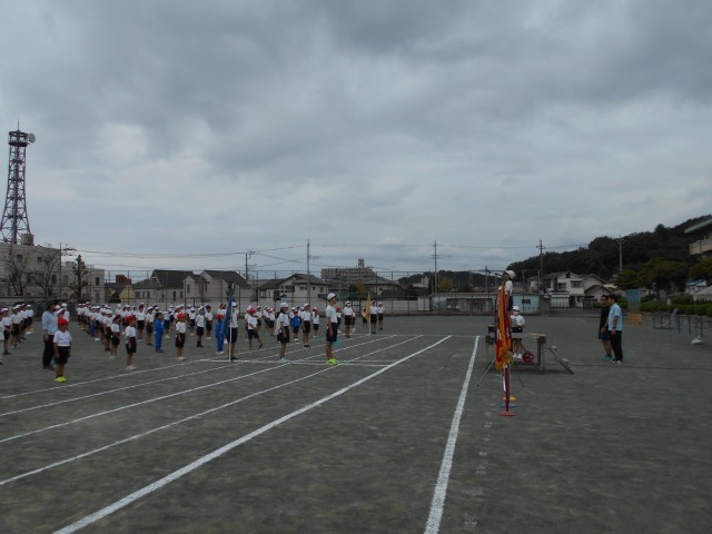 10/14(火)の朝の時間から1校時にかけて運動会のリハーサルを校庭でしました。