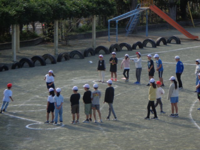 10月23日(木)朝のふれあい活動(縦割り)の時間、各団ごとに校庭と体育館に別れて、6年生が考えてくれた「みんなが仲良く楽しめる遊び」を行いました。運動会で深まった絆(きずな)の成果もあって、子どもたちは以前より交流を楽しんで取り組んでいるように思われました。6年生のリーダーシップもしっかり身についてきています!