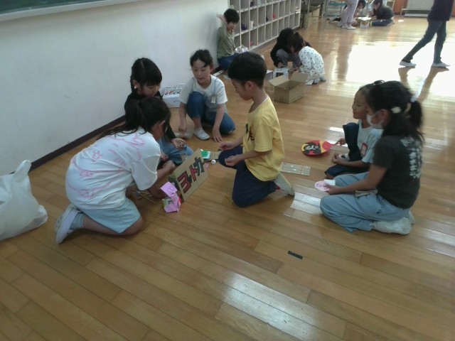 10/27(月)に2年生が生活科で1年生を招待して一緒に遊びました。2年生が作った手作りのゲームで、楽しんで交流していました。