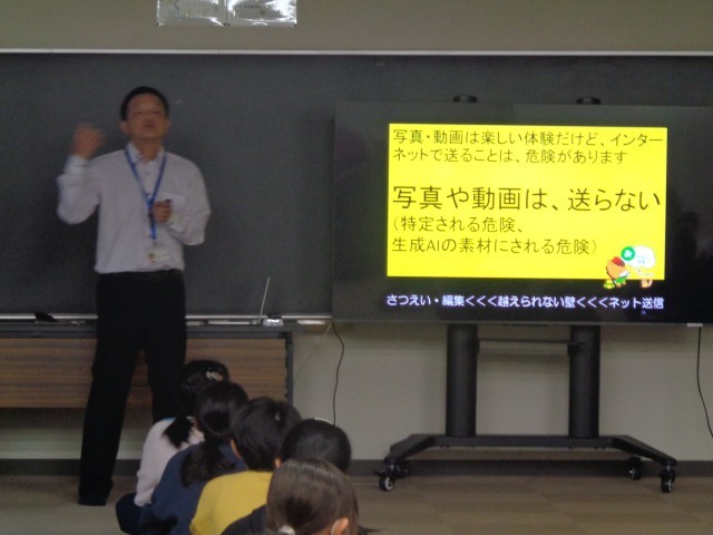 11月14日(金)5年生を対象とした情報モラル講習会を開催しました。講師には市民活動団体セーフネットりょうもうの方をお招きし、ネット上のトラブルを回避するために心がけることや注意することなどをわかりやすく説明していただきました。