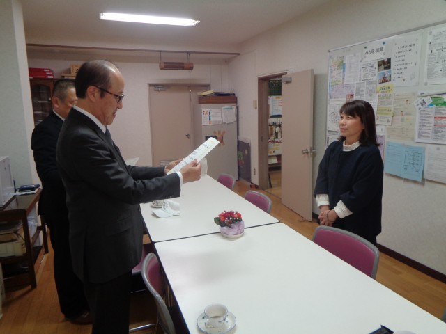 1月20日(火)桐生市教育長様、教育部参事様に来校していただき、桐生市教育委員の皆様からの教育実践論文の表彰者への賞状と記念品の授与が行われました。授与後は、懇談の時間もいただくことができました。今年度の受賞者7名のうち6名が西小関係職員でした。西小の先生方は頑張っていますので、これからも応援よろしくお願いします。