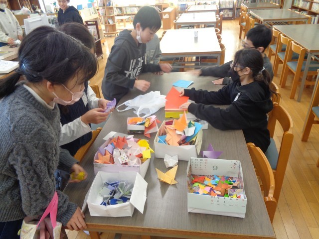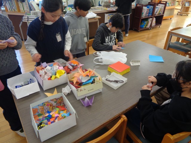 2月2日(火)〜5日(木)の3日間、本を二冊以上借りた児童に、図書委員会から素敵なプレゼントがもらえる企画を行いました。二冊以上借りた児童が図書委員に申し出るとその場でくじを引くことができ、図書委員会の子どもたちがつくった折り紙やしおりがもらえるといった企画です。西小の子どもたちの読書量は多いですが、この企画が始まってからは特に図書室にやってくる児童が多くなり、中には3日連続で二冊以上借りる児童もいます。本に触れるきっかけを考えてくれた図書委員のみなさん、ありがとうございます。