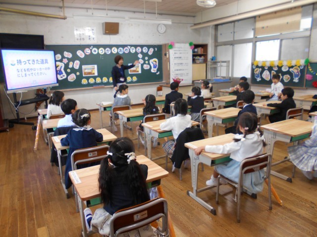 校長先生の「あ、い、う、え、お」の話を反応よく聞いていました。