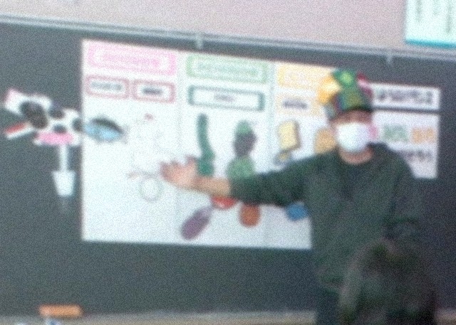 12月22日(月)の給食時に、桐生市学校給食共同調理場より栄養教諭に来校してもらい、食育のお話をしていただきました。