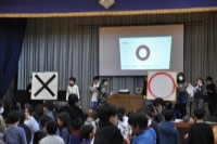 21日(金)の昼休みに、全校鬼ごっこ「相走中」(TVでおなじみになった「逃走中」を参考にしました。)が、秋晴れの校庭で行われ、ビブスを着用して鬼になった体育委員の児童と先生方が他の子どもたちを追いかけました。みんな歓声を上げながら、きれいに色づいたイチョウを横目に楽しそうに走り回りました。