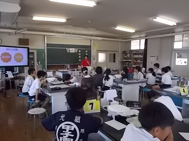 ポテトチップスで有名なカルビーの方を講師にお招きし、5年生がおやつの食べ方について学びました。