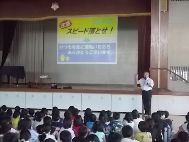 通学路の安全指導して、学校近くの大きな通りの対策について校長より子供たちに話をしました。