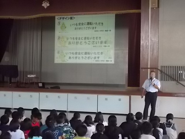 横断幕の内容は、「スピード注意!」のような注意喚起ではなく、「いつも安全に運転していただきありがとうございます」というもので、このメッセージを「神明小学校児童一同」として届けようということでしたが、子供たちもこの案を承知してくれました。