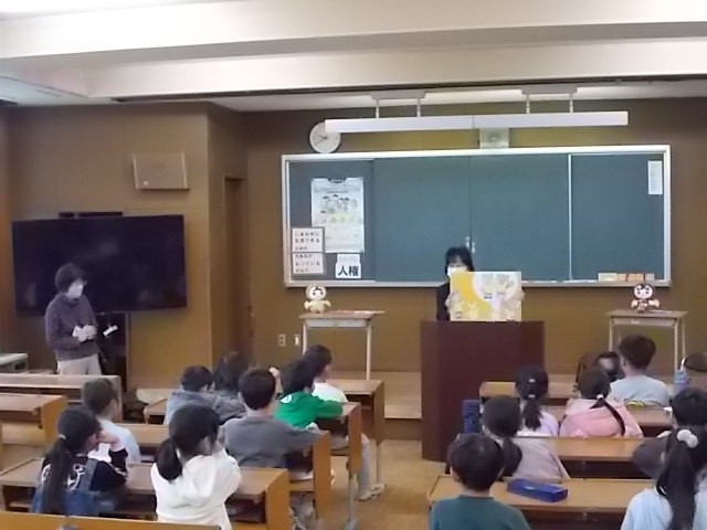 地域の人権擁護委員の方をお招きし、2年生の人権教室を行いました。