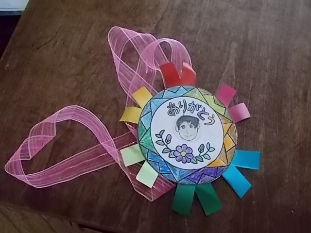 メダルは5年生を中心に手作りで作成し、メダルの裏には1〜5年生からのメッセージが貼ってあります。