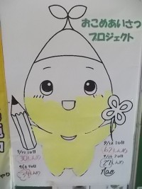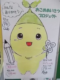 おこめあいさつプロジェクト4日目は、34枚の色紙が貼られました。しんめちゃんの顔...