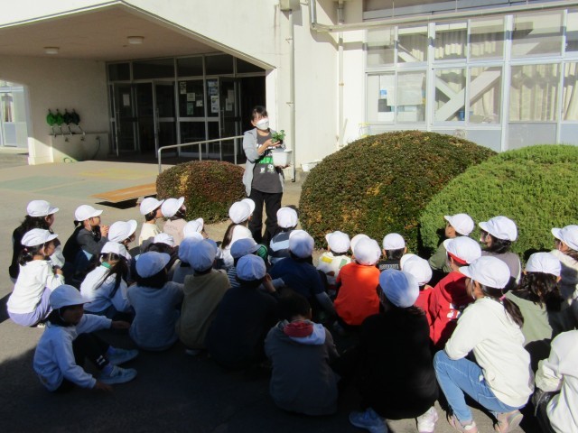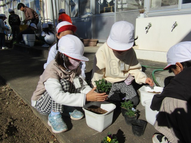 2年生がパンジーとビオラの苗を植えています。