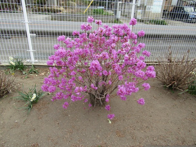 校舎の脇にもたくさんの花が咲き始めています。