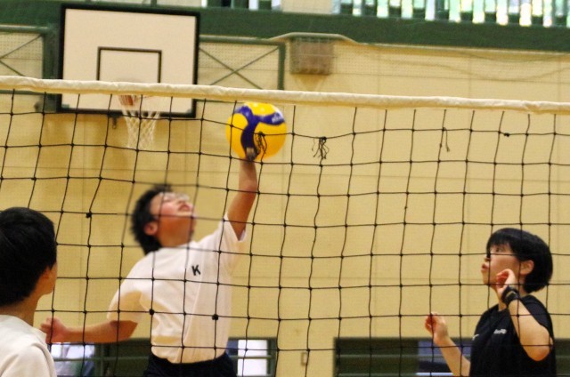 体験教室では、パス回しから、レシーブの仕方、スパイクの仕方を教わり、みんな何回も体験することができました。ちょっと暑い日だったので、ども子も汗びっしょりになってボールを追いかけていました。さすがにネットが高いので、上から叩き付けるようなというわけにはいきませんが、何度か打つうちに、なかなかよいステップと体勢でボールをスパイクする子も出てきました。