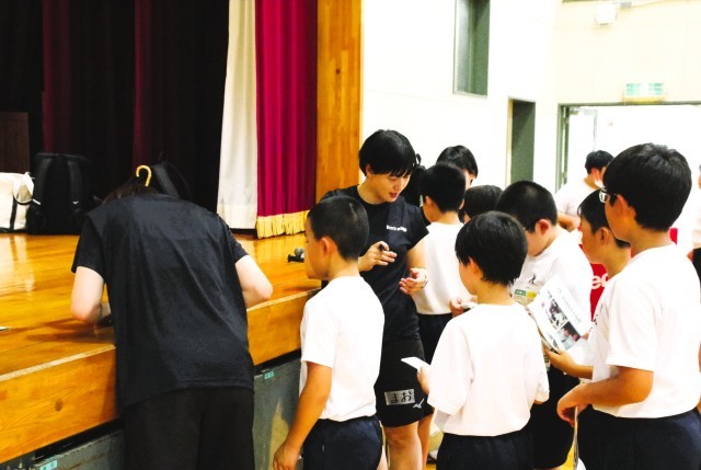 どのスタッフさんも明るく子どもたちを励ましてくれたので、バレーボールが好きな子が激増したと思います。最後はサインをしてもらったり、缶バッチをもらったりして、なんとも思いでに残る体験教室となりました。