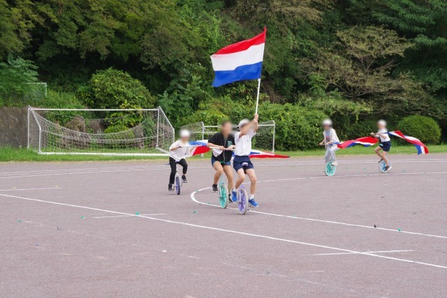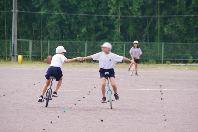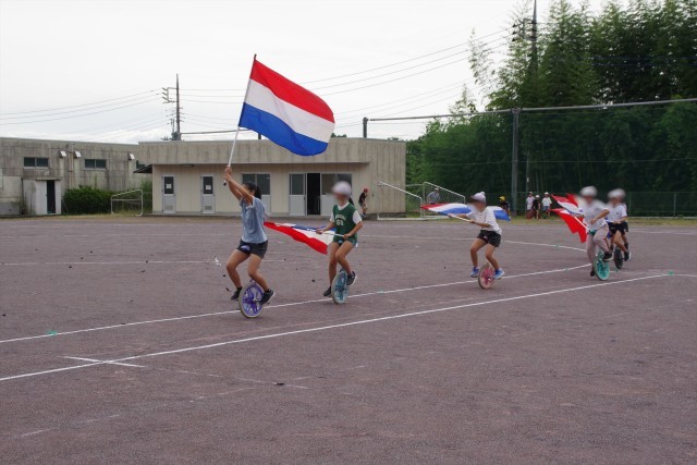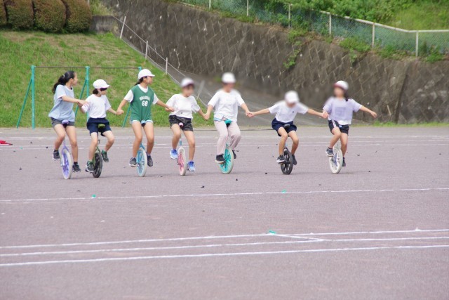 運動会の一輪車表現練習 公開日 2025/09/25 更新日 2025/09/25 学校のようす 9月22日(月)の昼休みに運動会の表現種目である「一輪車」の練習をしました。この日だけでなく、時間があるときには随時行っています。カラーガードを持って一列に隊列を組んで走ったり、手を繋いで回転したりと、演技の幅も広がってきました。手を繋いでの走りもきれいにできていますね。本番はもっと色々な動きが見られるのでお楽しみに。 +2