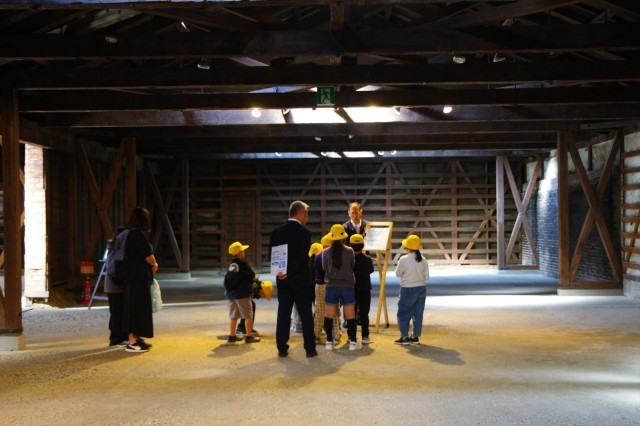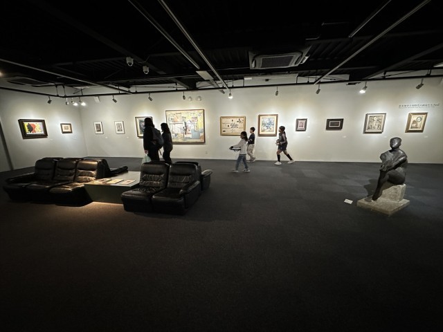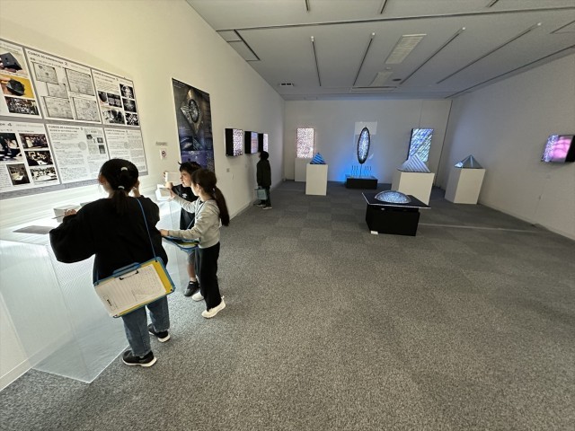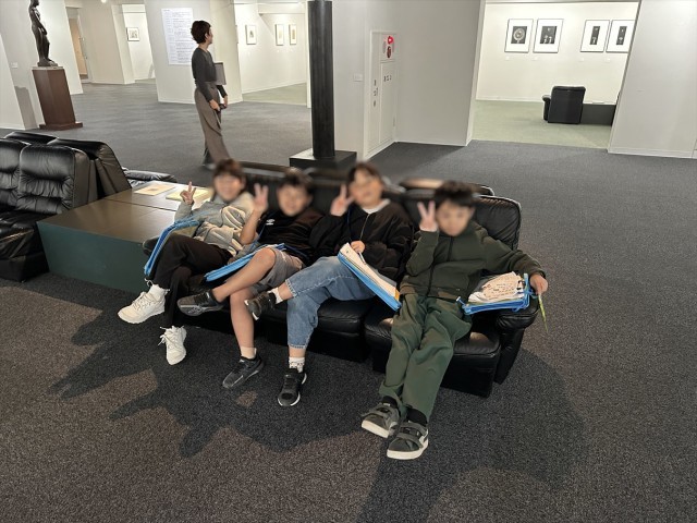 最後は大川美術館の見学です。この期間は「桐生のアーティスト2025 KIRYU Fantasia 桐生幻想曲」ということで、桐生にゆかりのあるアーティストの企画展が行われていました。まずは学芸員さんに絵画の見方を教えてもらいました。「気に入った絵をじっくり見ると良いですよ」、そして班ごとに自分の好きな作品探しに出かけます。「写真を撮っても良いですよ」と学芸員さんに言われたので、遠巻きに様子を撮してみました。ささっと進んでしまうと思ったら、子どもたちはけっこうじっくりと作品を見つめていました。コンパクトですが、良質なアートに触れられる施設があるというのは、桐生も捨てたもんではありませんね。
