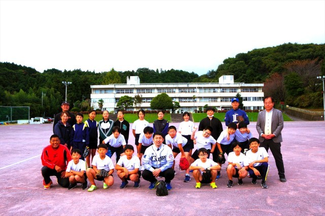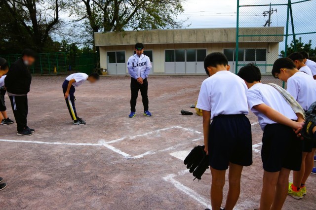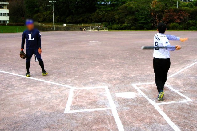 講義のあとは、校庭に出て野球に触れる活動をしました。大﨑さんのノックを受けたり、バッティングを教わったりしました。また、大﨑さんのフルスイングを見せてもらったときには、ヒット性のあたりに「すげぇ~」と歓声が上がっていました。