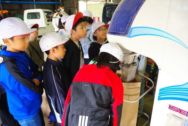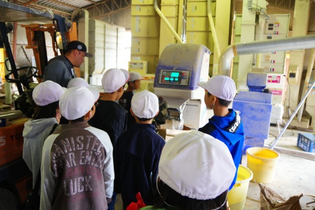 また、副産物の籾殻も家畜の飼料として活用されることを教えてくれました。この後精米作業になるのですが、こちらは前会長さんにお任せすることにしましょう。12月におにぎりの調理をするということなので楽しみにしましょう。