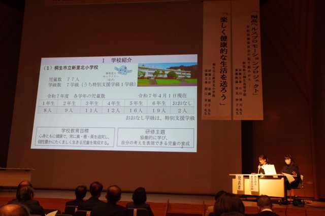 1月22日(木)に市民文化会館小ホールで行われた「桐生市みどり市学校保健会研究協議会」で本校の研修主任の先生と保健主事の先生が発表してきました。