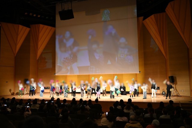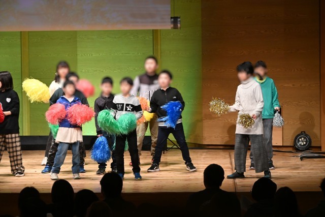 市内の特別支援学校の子とは、これまで、「なかよし遠足」や「秋の合同学習」などの行事を経て交流を深めてきました。本校の子も他校に友だちがいるそうですよ。今回の発表は「ダンス」「合唱」「合奏」の3グループに分かれての発表でした。おおなしはダンスグループです。