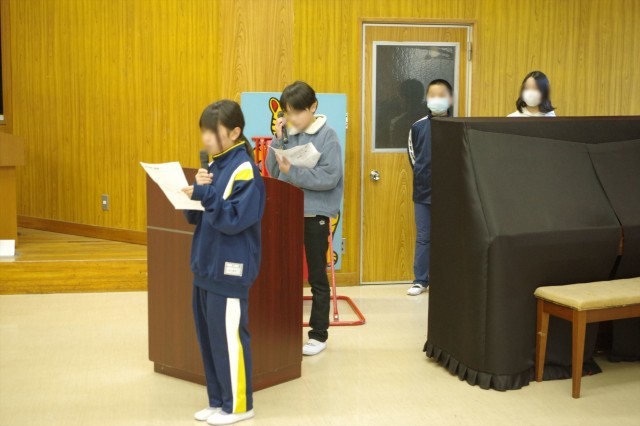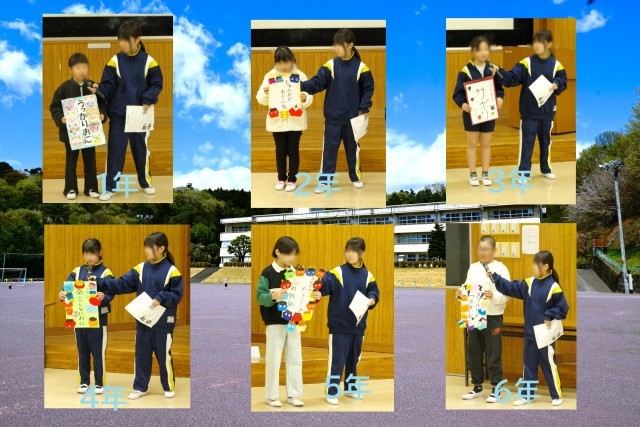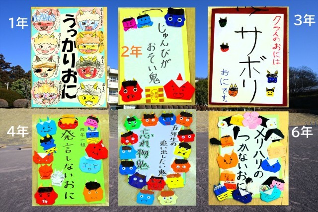 次に、各学級の代表の子が「クラスの追いだしたいオニ」を発表しました。1年生は「うっかりおに」2年生は「じゅんびがおそい鬼」3年生は「サボリおに」4年生は「発言しないおに」5年生は「忘れ物鬼」6年生は「メリハリのつかないおに」、ということでした。ちょっと自分たちに厳しい感じがしますが、それが課題だということですので、退治をがんばってほしいです。