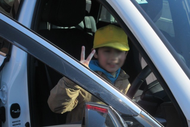 外に出ると、現役の白バイとパトカーがありました。「えっ、乗れるの?」そうです、乗れるんです。白バイはHONDAのCB-1300Pですね、最新型です。子どもが乗ると、とても巨大に見えます。そして、うらやましい。パトカーもひとつ前のなつかしいクラウンで、一人ずつ乗せてもらいました。クルマの中のいろいろな機械も見せてもらいました。