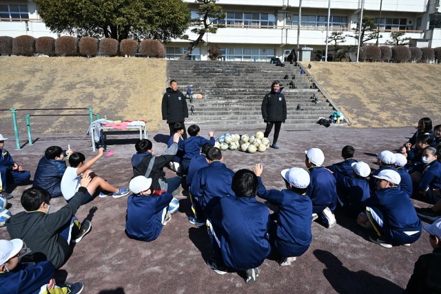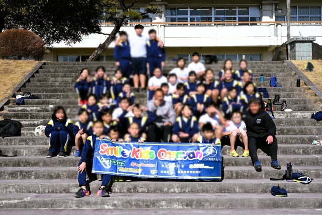 2月12日(木)の3,4時間目に、5,6年生がザスパ群馬のユースのコーチさんとともにサッカー教室を行いました。これは、ザスパ群馬が行っている「スマイル キッズ キャラバン」というプログラムを利用しました。ザスパ群馬は、指導者のプロが「スポーツの楽しさ」「身体を動かすことの喜び」「協力することの大切さ」を体感できる「仲間と助け合いながらのボールを使った運動」を行っています。