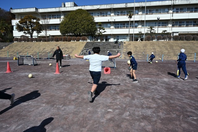 各地の学校を回っているので、コーチの方も子どもたちと接するのに慣れています。サッカーが好きな子も、そうでない子も楽しめた2時間でした。お2人のコーチ、ありがとう。