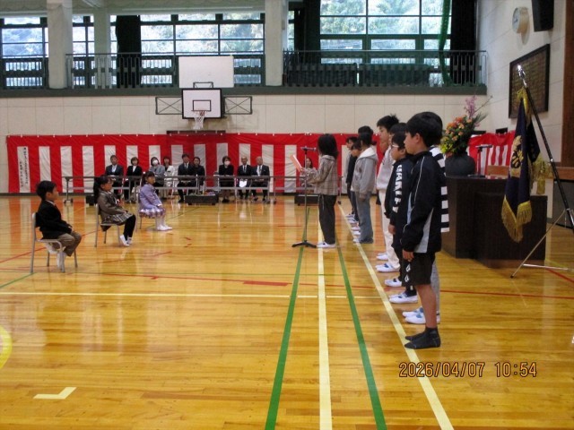 小さな学校なのであっという間に式は進行していきます。6年生による歓迎の言葉と歌のプレゼントに入りました。代表の男の子が元気よく話しました。