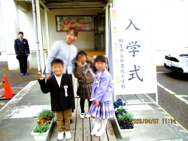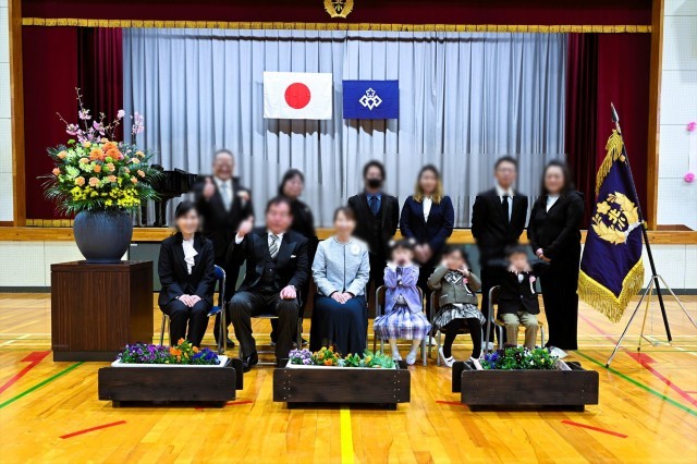 さいご、みんなで記念写真を撮りました。お父さん、お母さんも入っていただきましてもこの人数です。いろいろなことに慣れて、元気な北小っこになってほしいと思います。