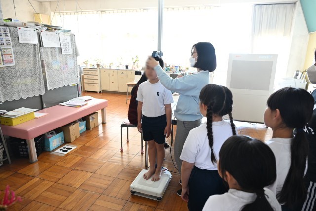 去年より大きくなったかな? 身体計測 公開日 2026/04/08 更新日 2026/04/08 学校のようす 4月8日(水)の2時間目、春の身体計測を行いました。子どもたちは見た目から大きくなっています。さてどのくらい大きくなったかな?計測器からちょっと早めに降りてしまって、再計測になる子も。結果は後日書面でお伝えします。