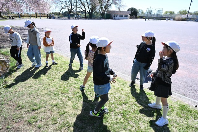 4月8日(水)の休み時間は多くの子どもたちが外に出て、遊んでいます。そう、今日はとっても良い天気で、空気も澄んでいます。