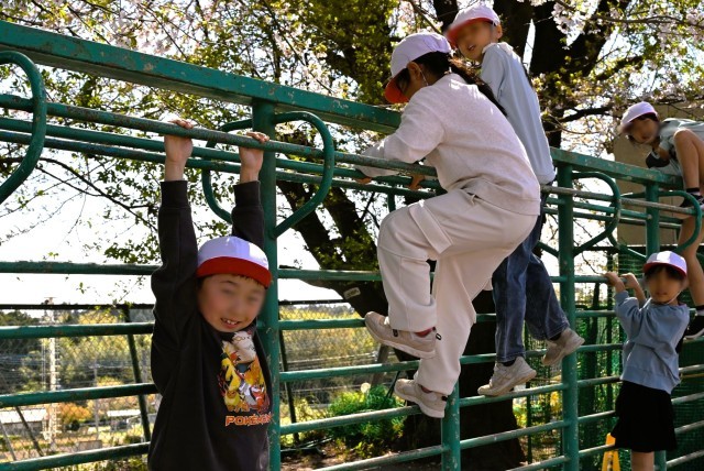 下級生とサッカーを楽しむ4年生、豪快にブランコをこぐ子、池の中をのぞく子(生まれたてのオタマジャクシがヤバい その後鬼ごっこへ発展)、遊具でくつろぐ5年生ガールズ、サクラの木の下の雲梯で体を伸ばす子。みんな数分ごとにすることを変えて楽しんでいます。ほかにも、バスケットをしたりタイヤを跨いだり、6年生はサッカーを始めたようですね。あまり学年にこだわらないで遊ぶ北小の子はみんな仲が良いです。イイね👍