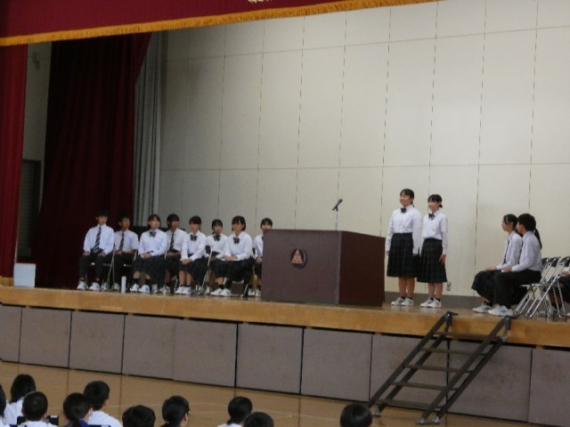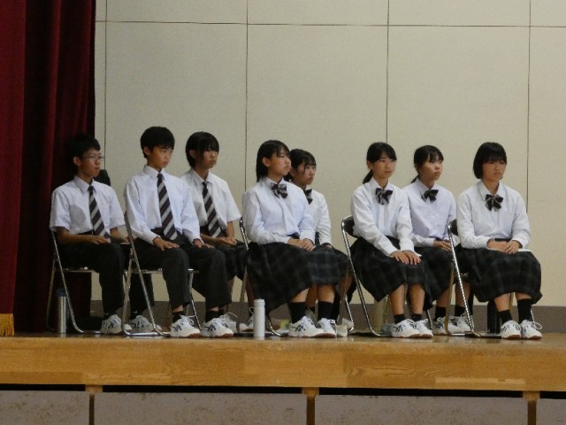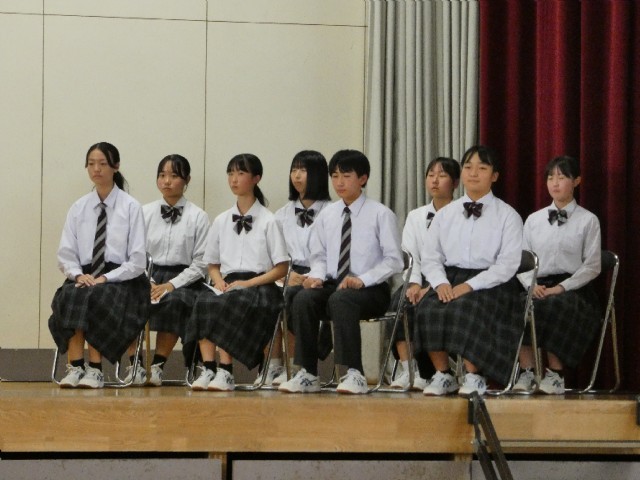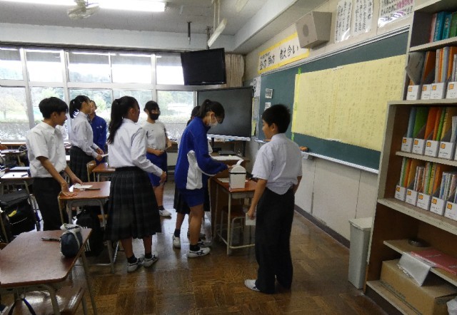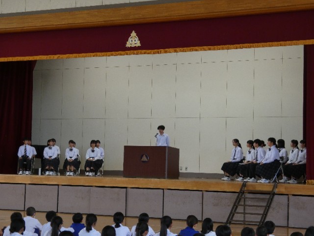 10月15日(水)生徒会本部役員選挙(立会演説会と投票)を行いました。体育館に集まった全校生徒の前で立候補者と責任者が登壇し演説を行いました。立候補者は清流中をよりよい学校にするためにやりたいこと(公約等)を堂々と発表し大変立派でした。誰が当選しても生徒会本部役員として責任を持って学校のために取り組んでくれると思わせくれました。また、聞いている生徒たちも真剣に耳を傾けていました。本日に至るまで、選挙管理委員会のみなさんが資料を作成し立会演説会の運営と進行、その後の投票と開票作業まで責任を持って務めてくれました。お疲れ様でした。