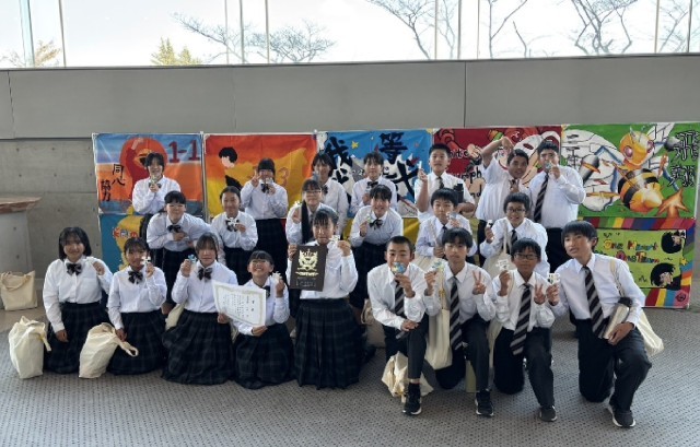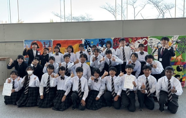 学年合唱「Let's search for tomorrow」は大変綺麗な歌声でした。1年生は初めての合唱コンクールでしたが、各クラス、パートリーダーを中心に一生懸命練習してきました。1年生らしい元気ではつらつとした素晴らしい合唱でした。最優秀賞は1年3組に輝きました。最優秀指揮者賞は1組のIさん、最優秀伴奏者賞は1組のHさんに輝きました。おめでとうございます。