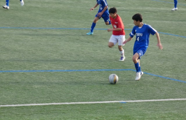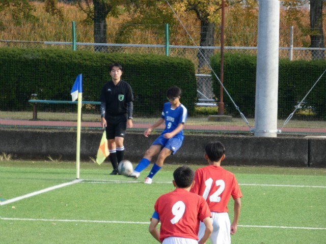 2回戦は、総体準々決勝で敗れている赤堀中にリベンジする気持ちで臨みました。前半に1点先制されるもすぐに追いつき、また前半終了間際に逆転ゴールを決め2-1で折り返しました。後半開始早々にフリーキックから失点し、同点に追いつかれてしまい、その後押し気味に試合を進めるも引き分けのままPK戦になりました。PK戦ではお互い4人目までゴールを決めて5人目に相手がゴールを決め、清流中は惜しくも相手GKに止められてしまい、あと一歩のところで敗退となりました。最後まで諦めずゴールを狙い走りきりました。力を出し切ってくれたと思います。悔しい気持ちを次につなげてほしいと思います。