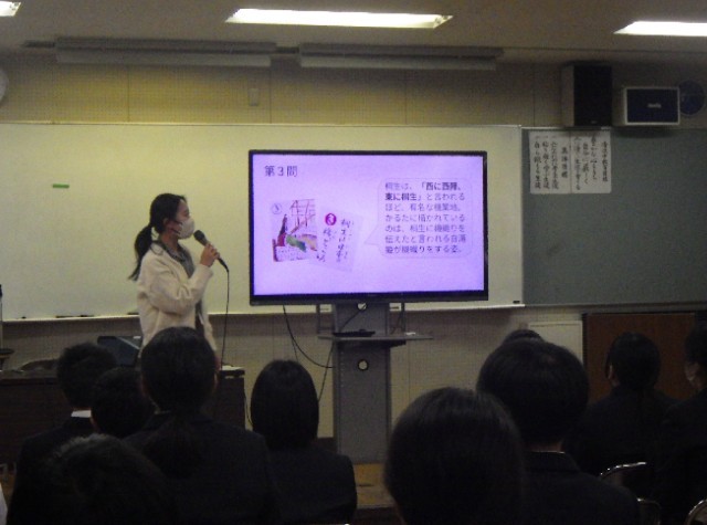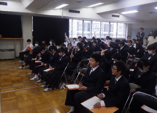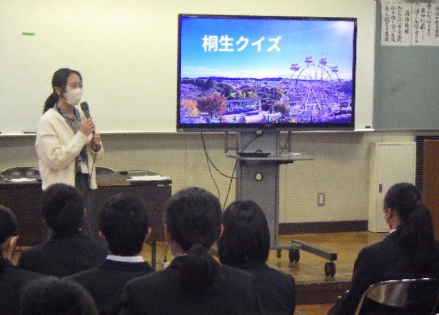 11月25日(火)の2校時、1年生が総合的な学習の時間で「桐生学習」を行いました。清流中校区にある本町1、2丁目及び天神町は桐生天満宮や有鄰館等の歴史的な建造物が多数あり、桐生新町重要伝統的建造物群保存地区(重伝建)と呼ばれています。また、生徒たちが生活している地区にはのこぎり屋根や蔵が残り、町並みも綺麗に保存されています。歴史や文化だけでなく桐生川や周辺の山々、そこに住む動植物等、身近なところに素晴らしい地域教材がたくさんあります。1年生は「私たちの住む桐生市のことを知ろう」ということで、本日は導入の時間でした。今後、主に「重伝建」について学習を進めていきます。生徒たちには「桐生学習」を通して桐生の魅力を実感し、桐生を好きになる気持ちを高めていってほしいと思います。
