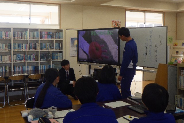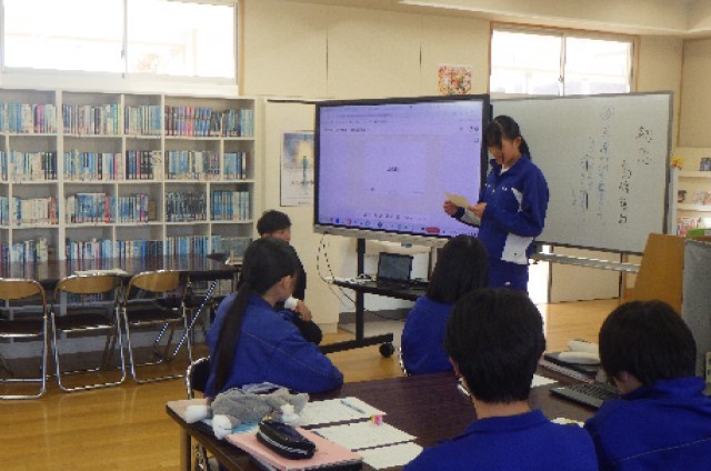 11月26日(水)5校時に市教育研究所課題研究「ICT機器活用研究班」の研究授業が行われました。3年生の国語の授業【「初恋」作者:島崎藤村】で、これまで「作者の意図を読み取りCMを作る」という学習を進めてきました。本時はそれぞれが作ったCMを鑑賞し自分の考えを深める授業でした。生徒たちはICT機器を有効に使いこなし、CM作成に取り組んできました。ICT機器の活用について提案性のある授業でしたし、これまでの学習活動を通して授業のねらいにせまれた生徒が多かったのではないかと感じました。