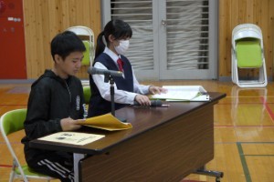 10月17日(金)任命式 公開日 2025/10/20 更新日 2025/10/20 学園の行事 朝行事の時間に、新しい児童生徒会本部役員になった生徒に任命書が手渡され、後期の専門委員会がスタートしました。14日(火)に行われた立会演説会では、4人の立候補者が堂々とした態度で熱意あふれる演説を行っていました。新しい児童生徒会本部役員が中心となって、黒保根学園をよりよい学校にしてくれるはずです。 +3